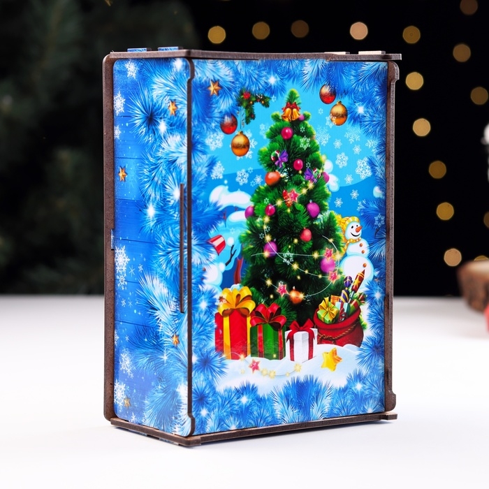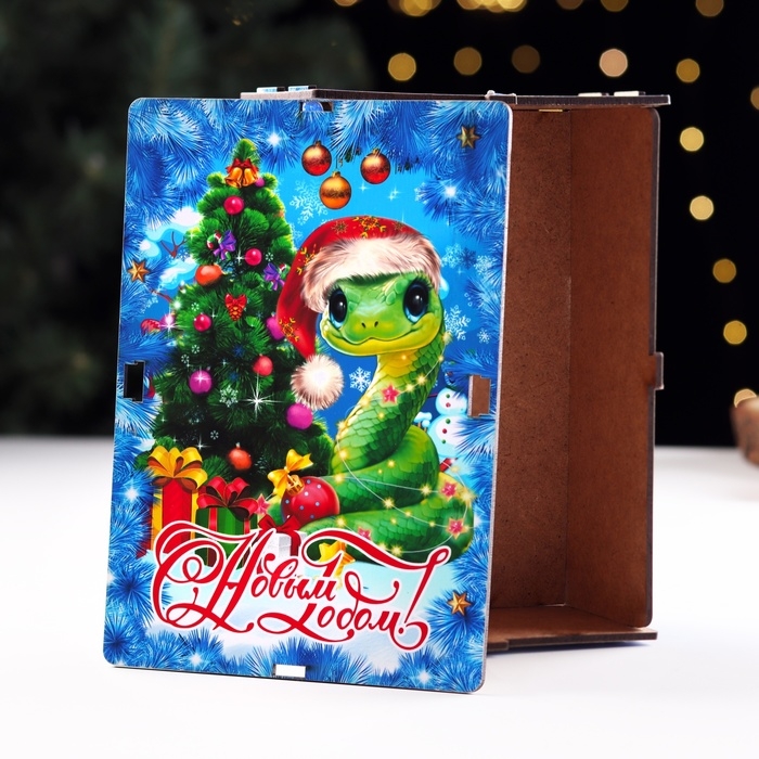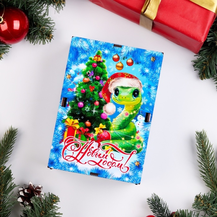 Новый год. Ящик самосборный с символом года "Змея", малый синий, 20х13,6х8 см