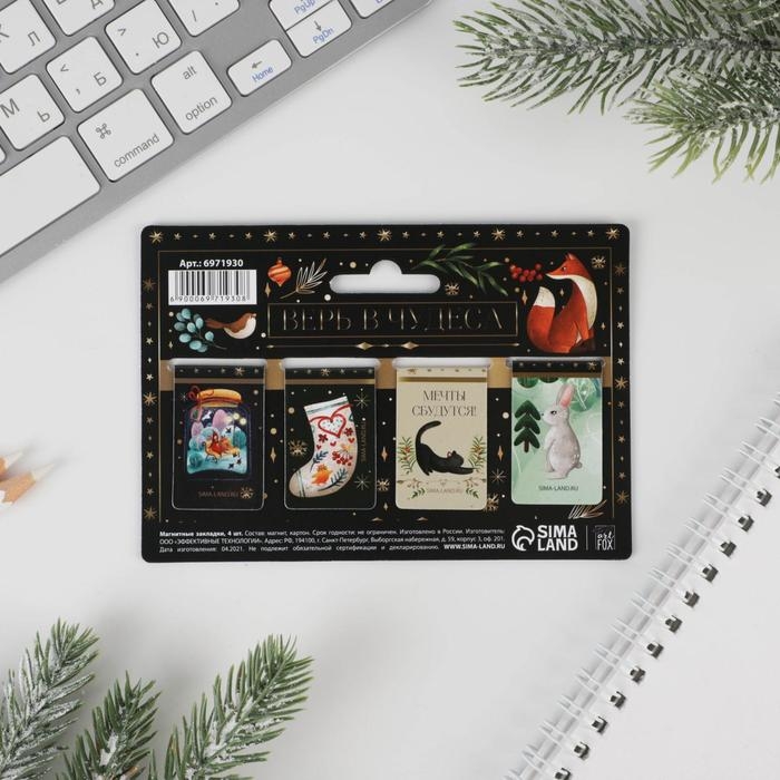 Новый год. Закладки для книг магнитные «С Новым годом», 4 шт мини