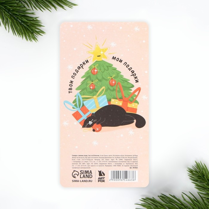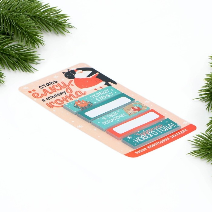 Новый год. Закладки для книг-стикеры«Я отвлеку кота!!», 5 шт, 30 л