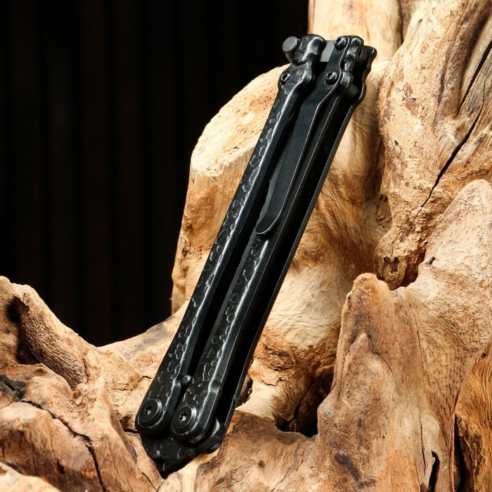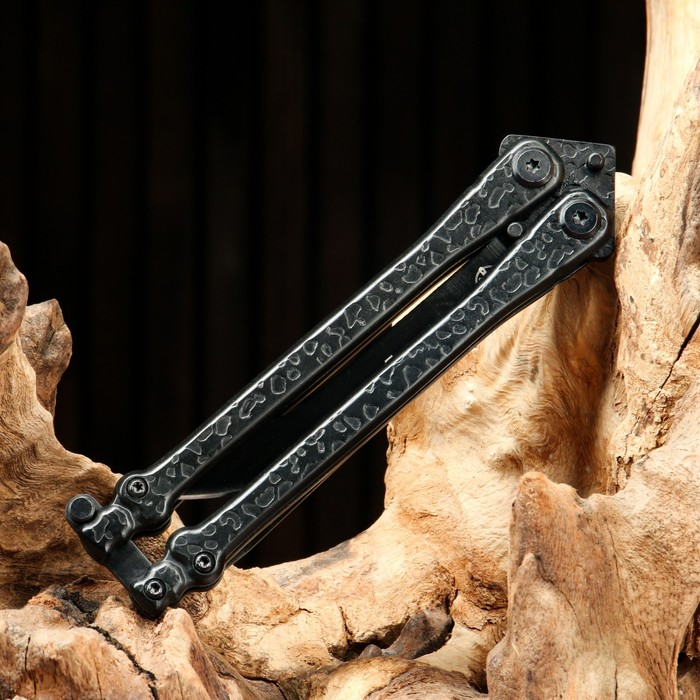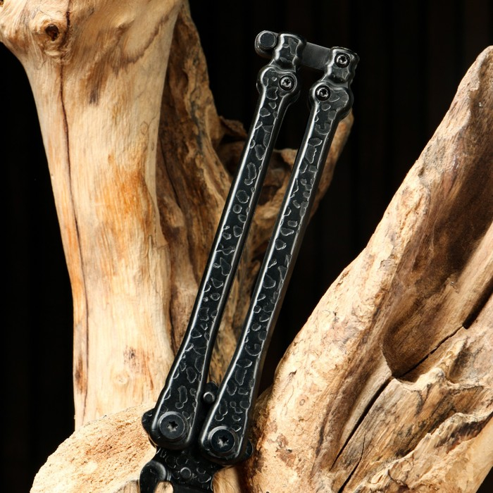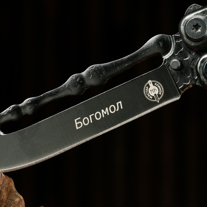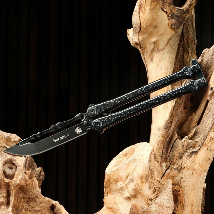 Нож-бабочка "Богомол" черный, сталь - 440, рукоять - сталь, 20 см