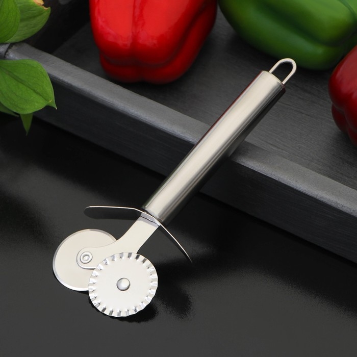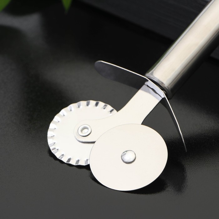 Нож для теста и пиццы Доляна «Металлик», 2 лезвия, 18 см, цвет серебристый
