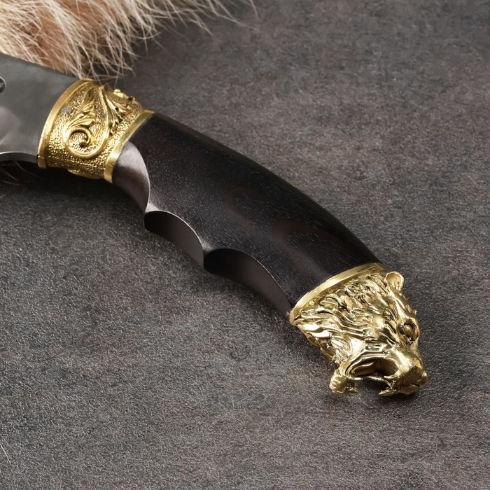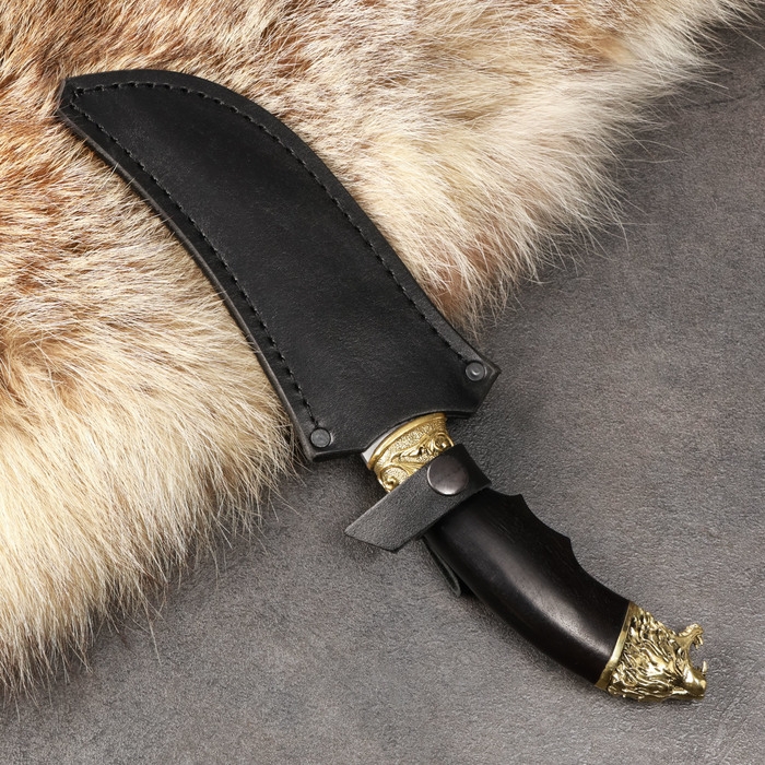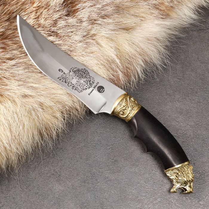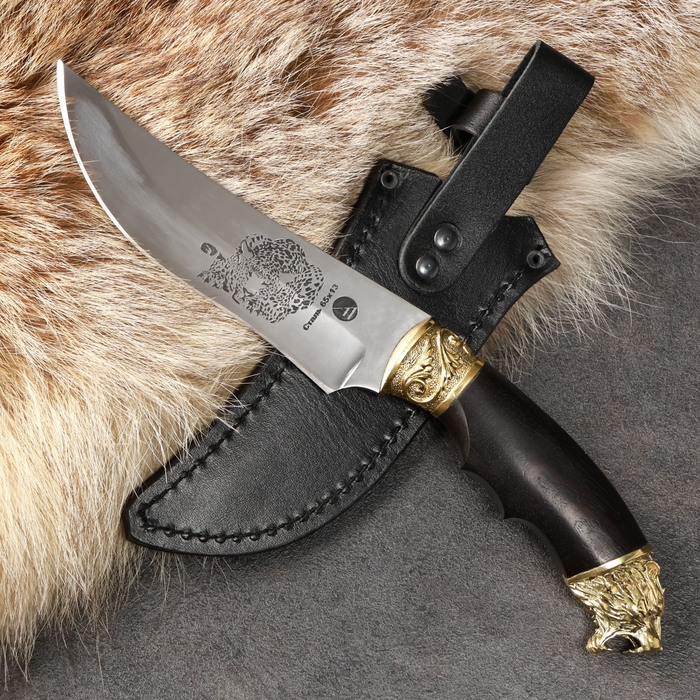 Нож кавказский "Ягуар" с ножнами, гарда - латунь, сталь - 65х13, рукоять - граб
