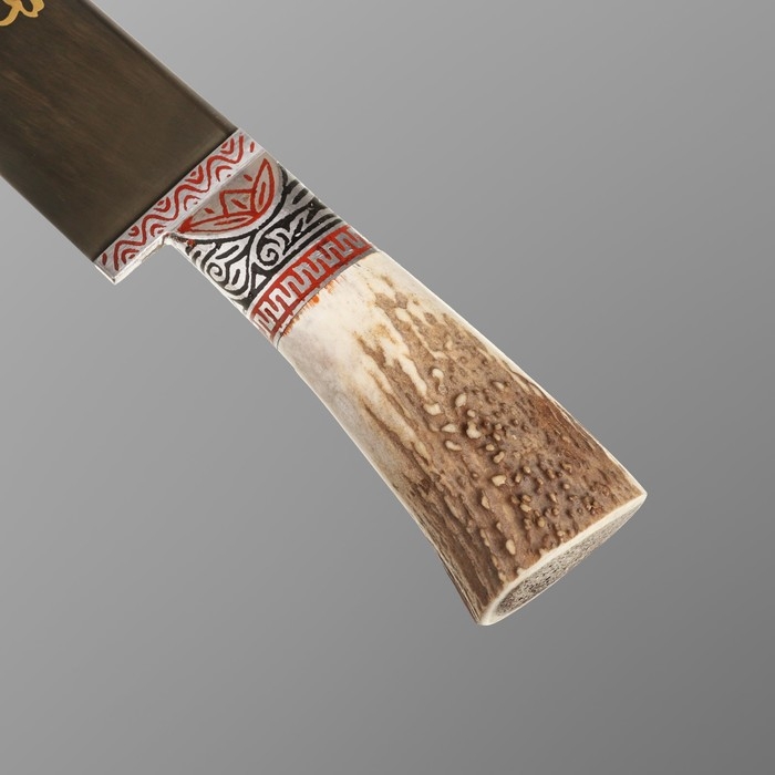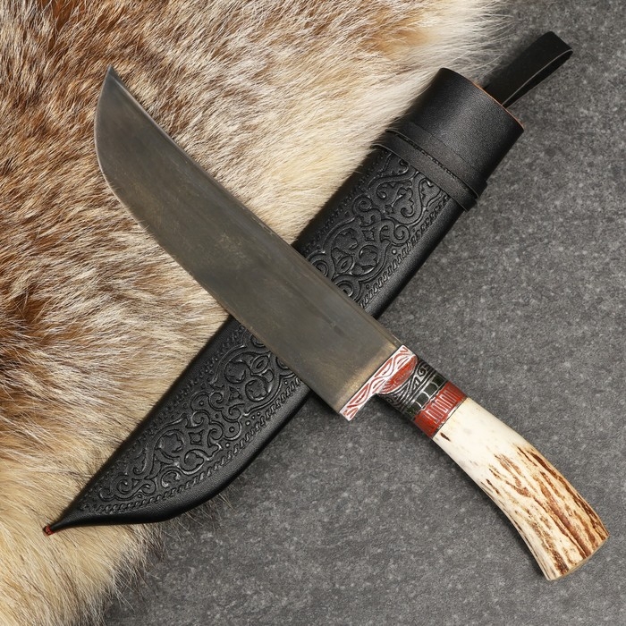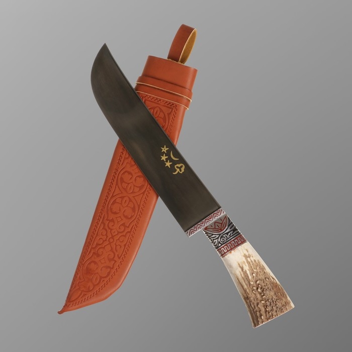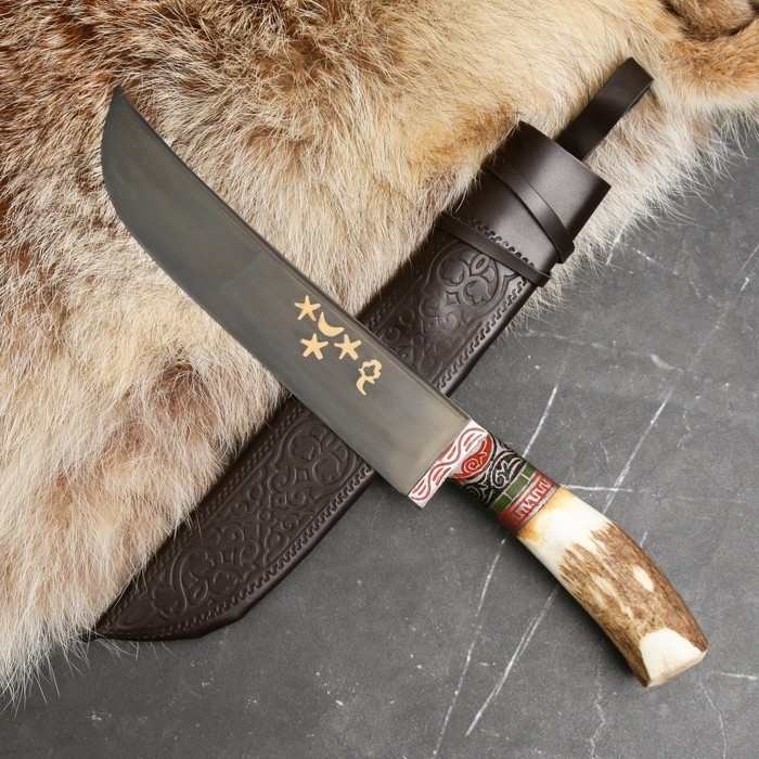 Нож Пчак Шархон - Большой-шеф, косуля, широкая рукоять, гарда олово гравировка. ШХ-15 (20-22