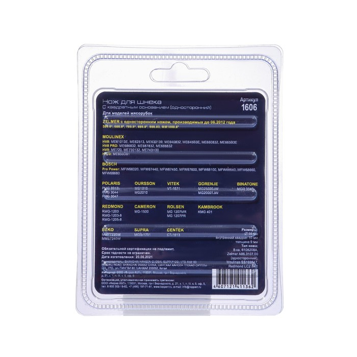 Нож с квадратным основанием Topperr для мясорубок Zelmer, Moulinex, Bork