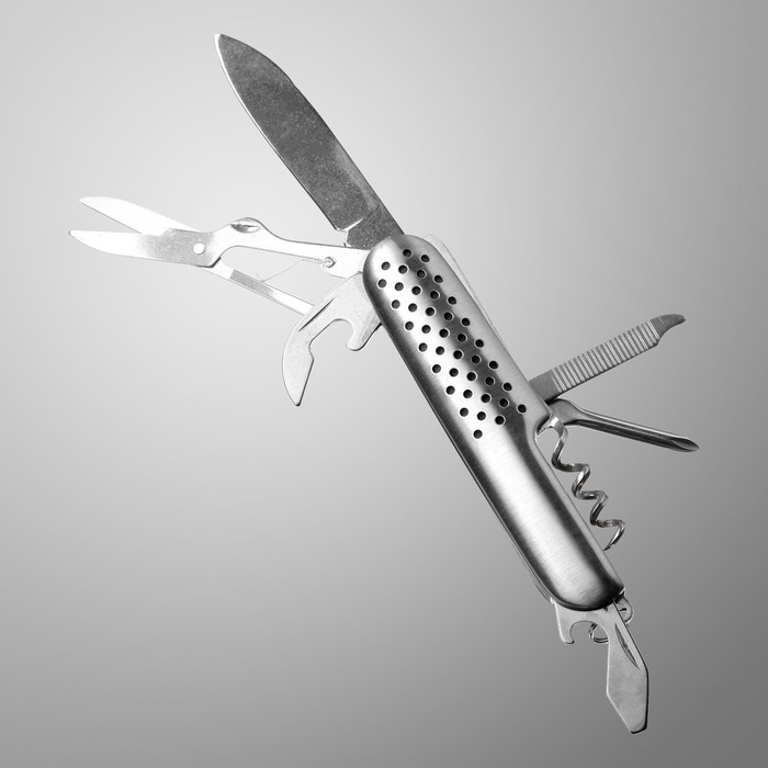 Нож швейцарский "Фобос" 8в1, рукоять с перфорацией, хром включает в себя: