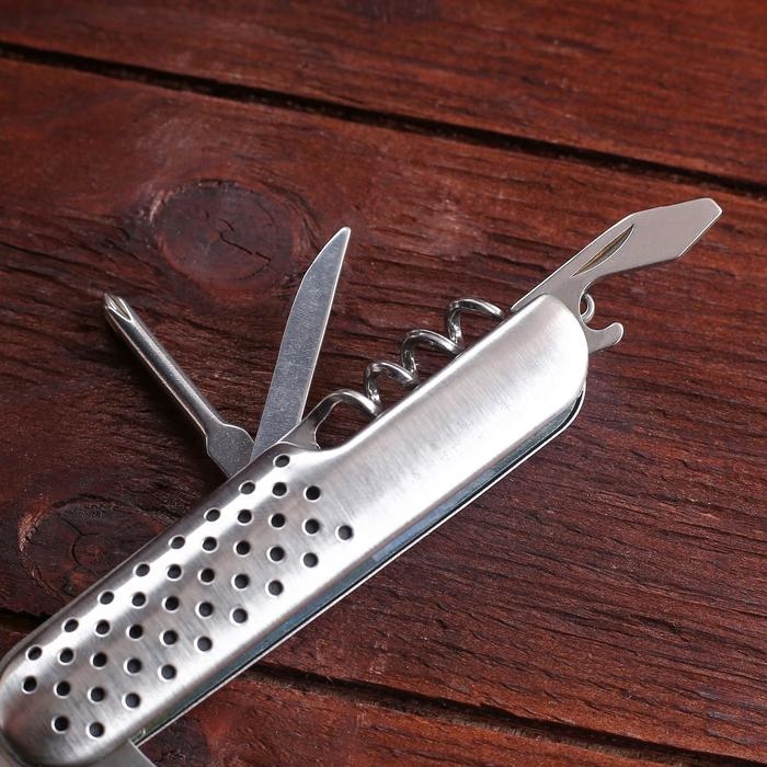 Нож швейцарский "Фобос" 8в1, рукоять с перфорацией, хром