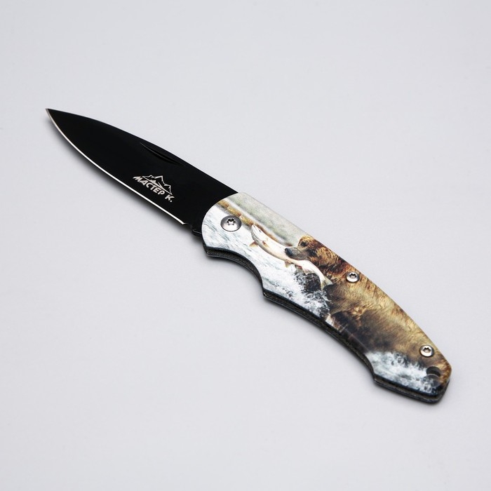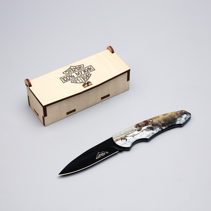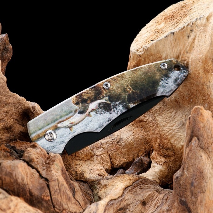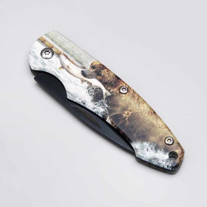 Нож складной "Медведь на охоте" 12,6см, клинок 70мм/2,3мм, в подарочной коробке