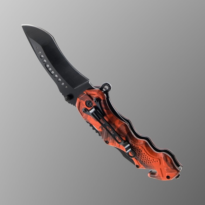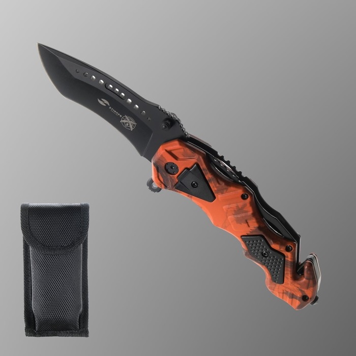Нож складной Stinger, лезвие - 3Cr13, рукоять - алюминий, оранжевый камуфляж, 10 см