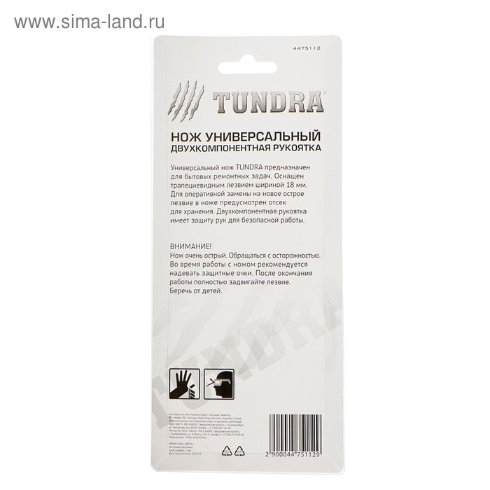 Нож универсальный ТУНДРА, 2К корпус, защита руки, трапециевидное лезвие (2 лезвия), 19 мм