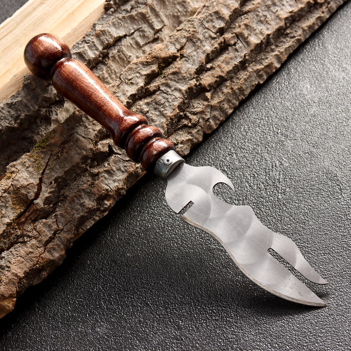 Нож-вилка для снятия мяса с шампура, узбекская с деревянной ручкой, 27 см