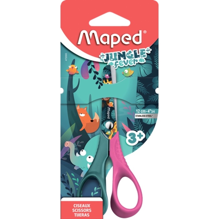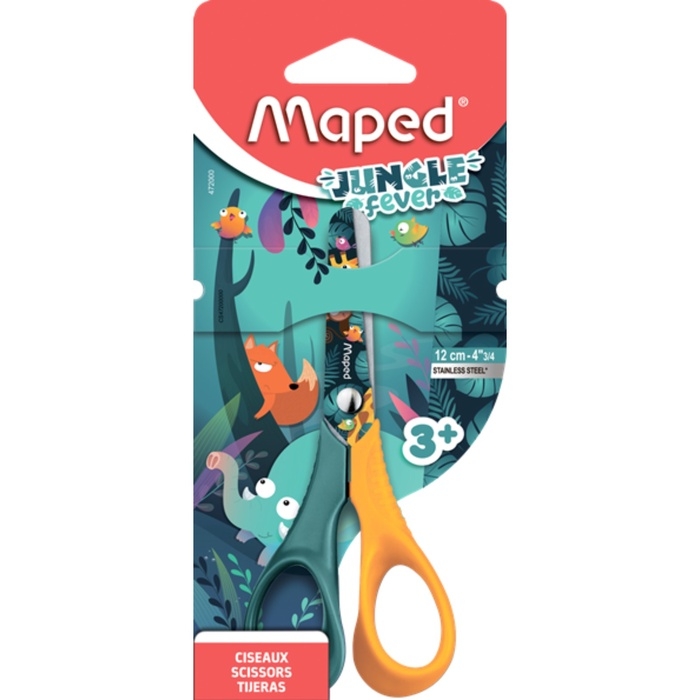 Ножницы детские 12 см JUNGLE FEVER VIVO, эргономичные 3D кольца, закруглённые лезвия, МИКС