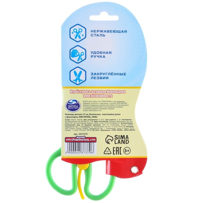 Ножницы детские 13 см, безопасные, пластиковые ручки с фиксатором, МИКС