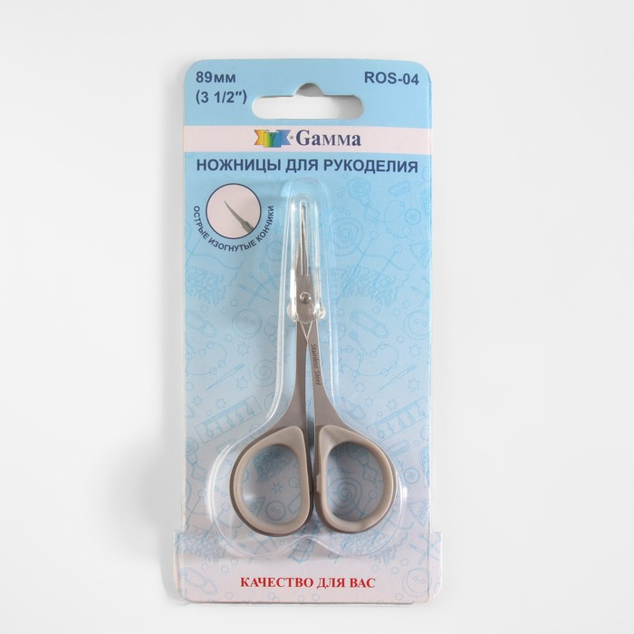 Ножницы для рукоделия, скошенное лезвие, прорезиненные ручки, с защитным колпачком, 3,5", 8,9 см, цвет серый
