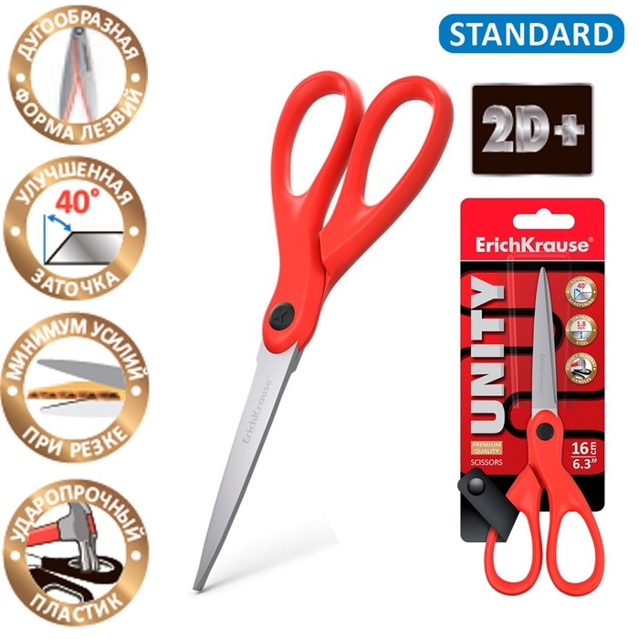Ножницы с лезвиями из высококачественной нержавеющей стали. Ручки классической формы изготовлены из ударопрочного пластика.