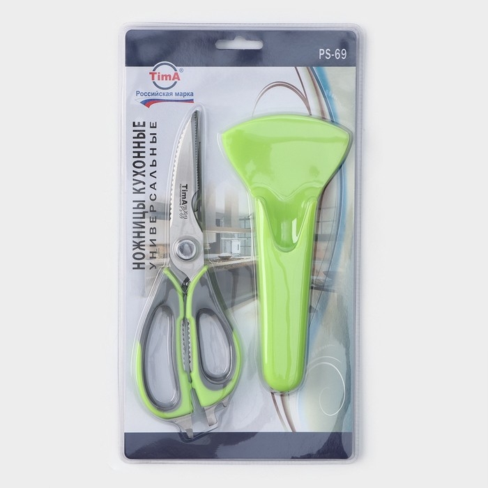 Ножницы кухонные Доляна «Помощник», 19 см, цвет зелёный