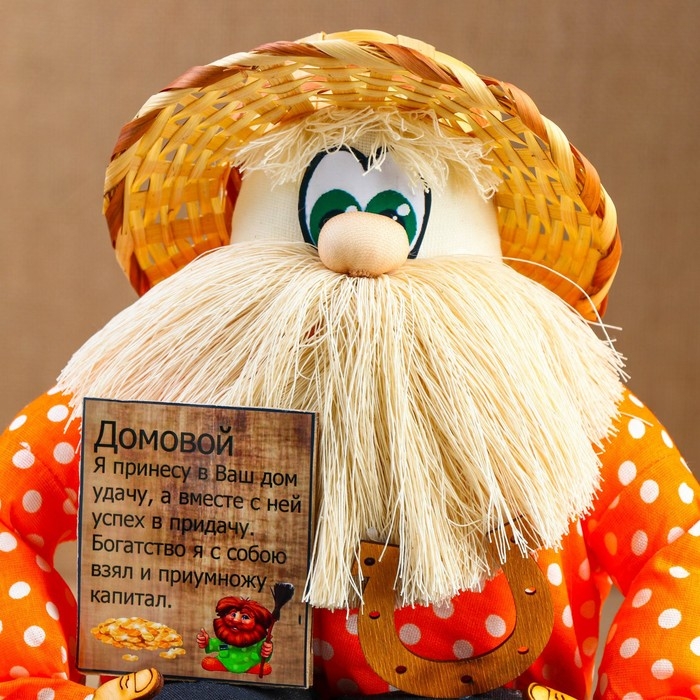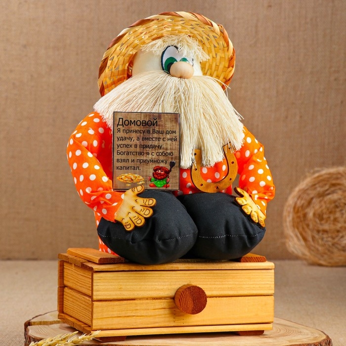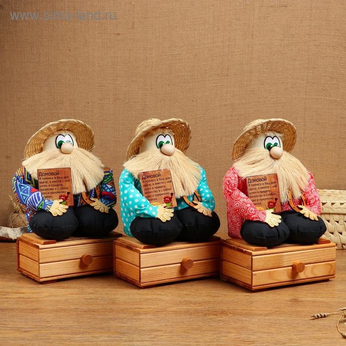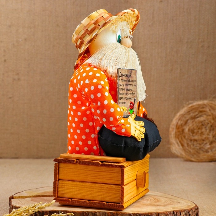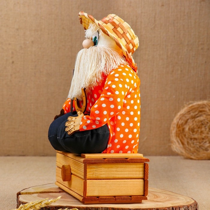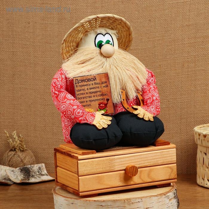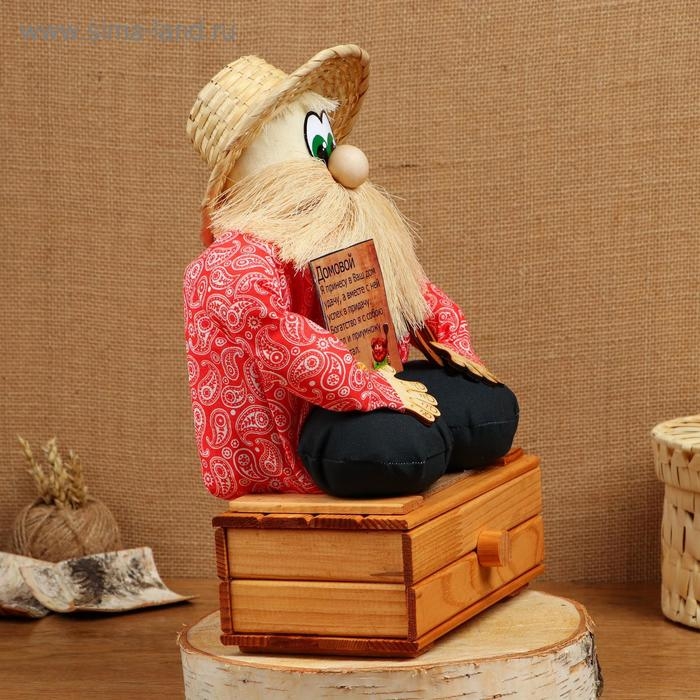 Оберег - домовой "Берендей в шляпе, сидит на сундуке", h = 32 см, микс