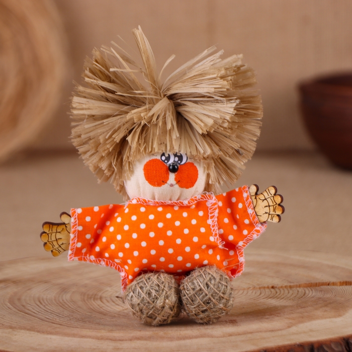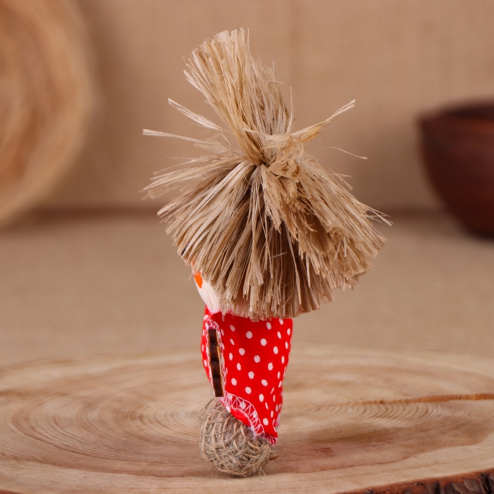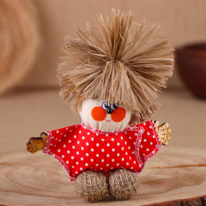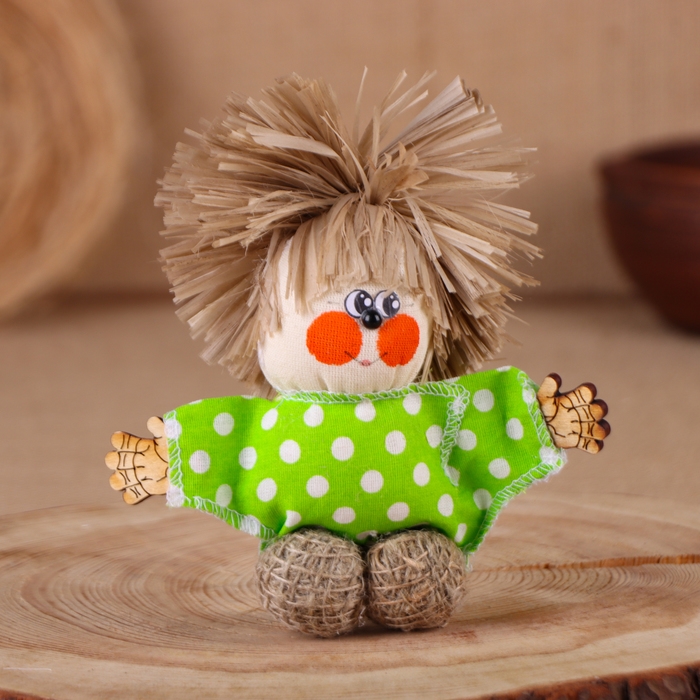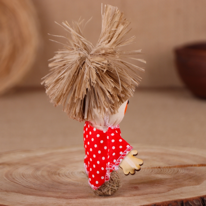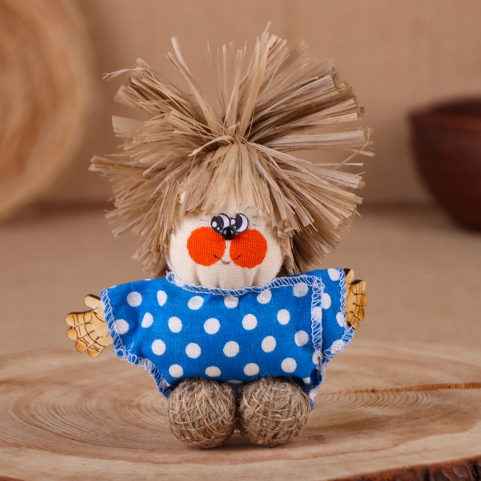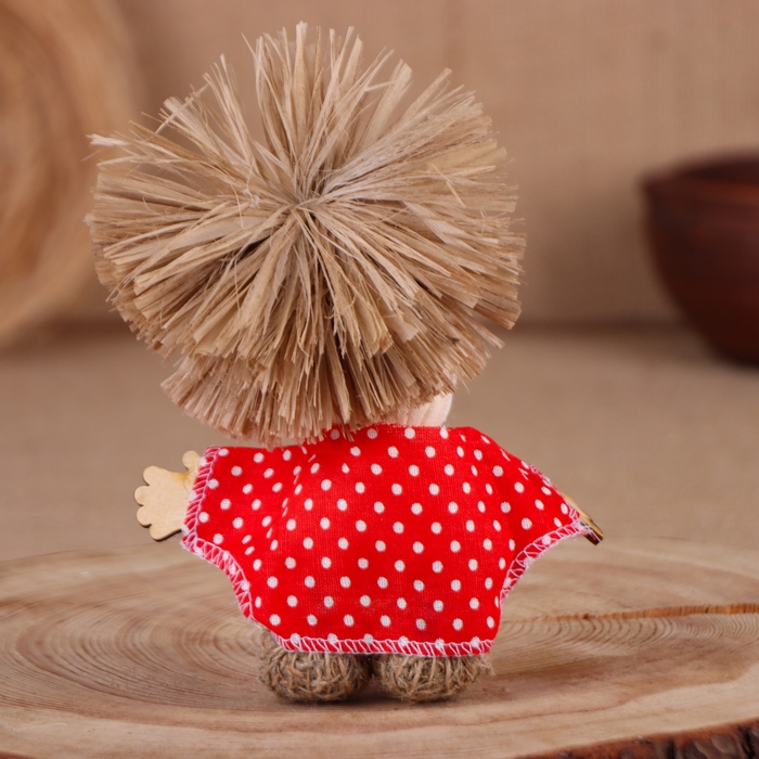 Оберег-домовой "Славуся в льняном колпаке, с ложкой и подковой", микс