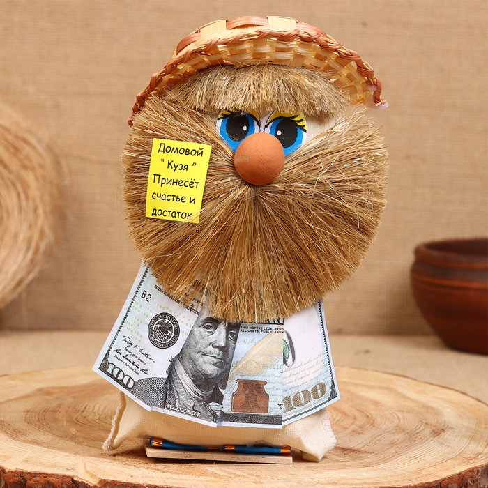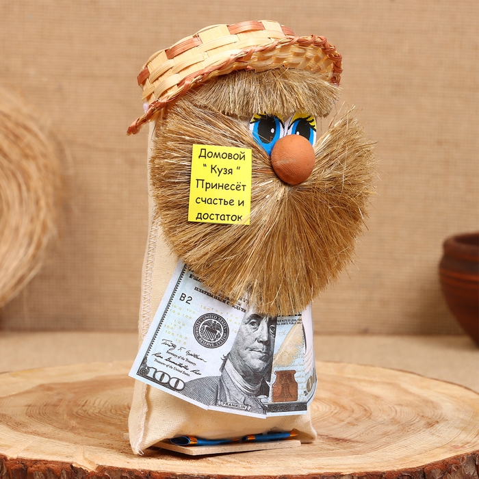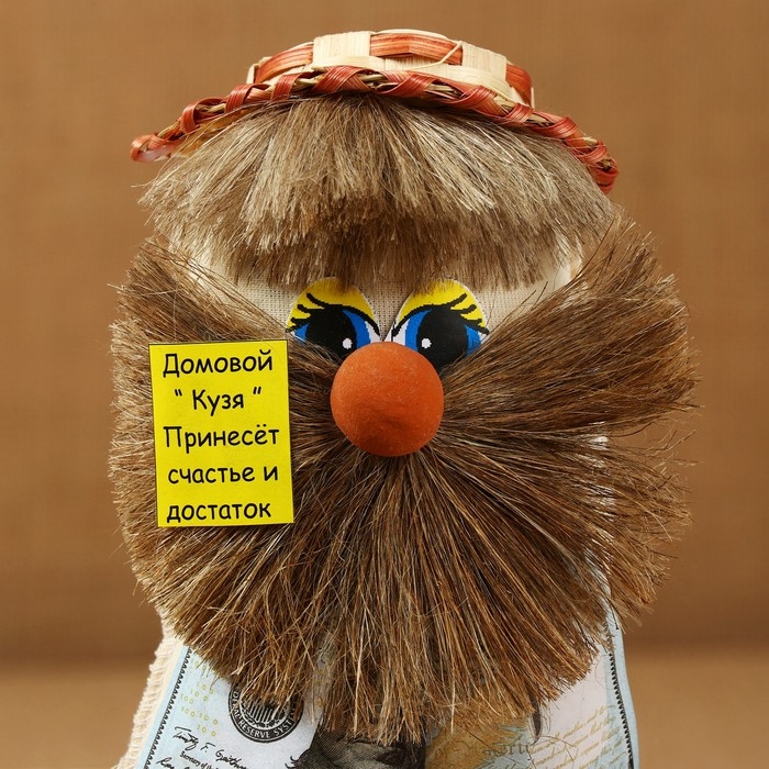 Оберег-домовой "Кузя в кепке, с метлой и подковой", 23х25х13 см МИКС