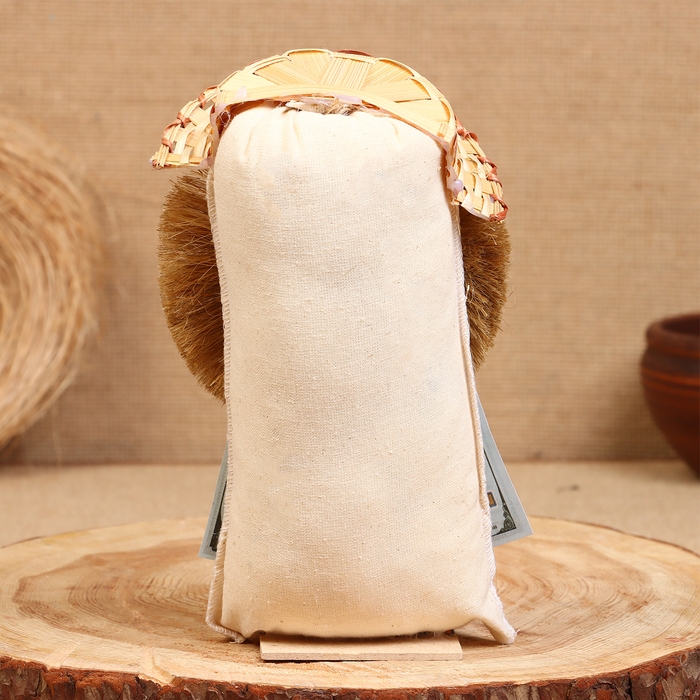 Оберег-домовой "Славуся в льняном колпаке, с ложкой и подковой", микс