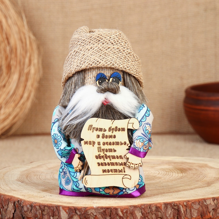 Оберег "Домовой с панно", 15-16 см