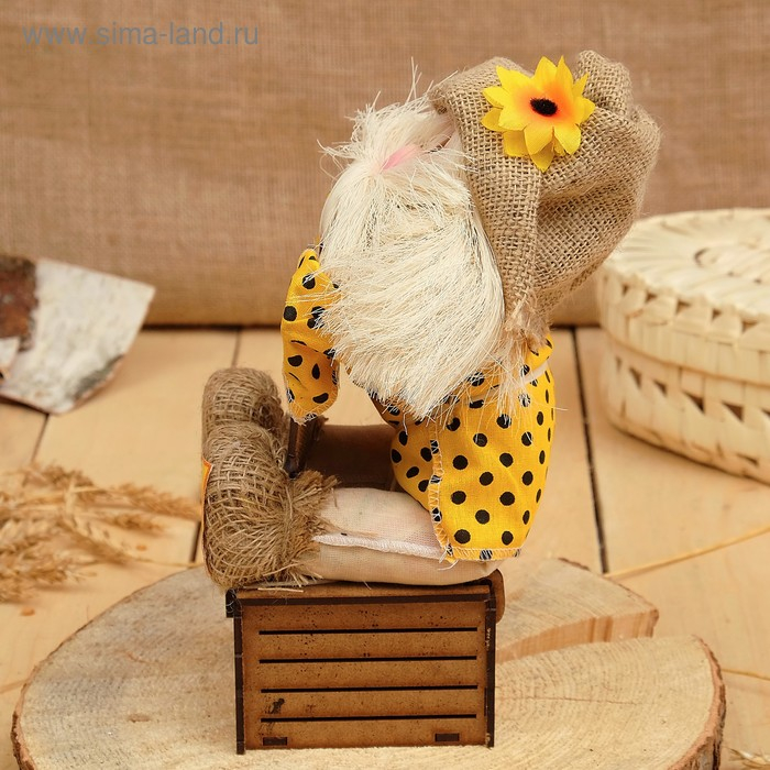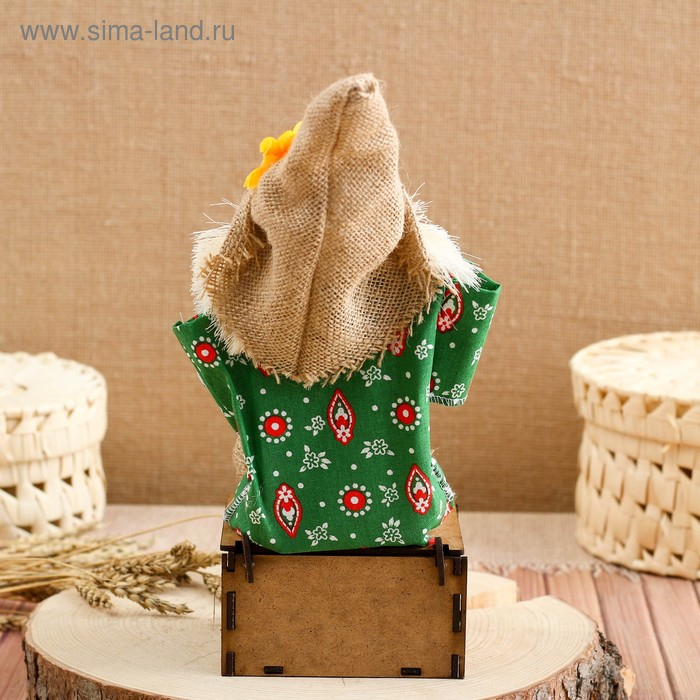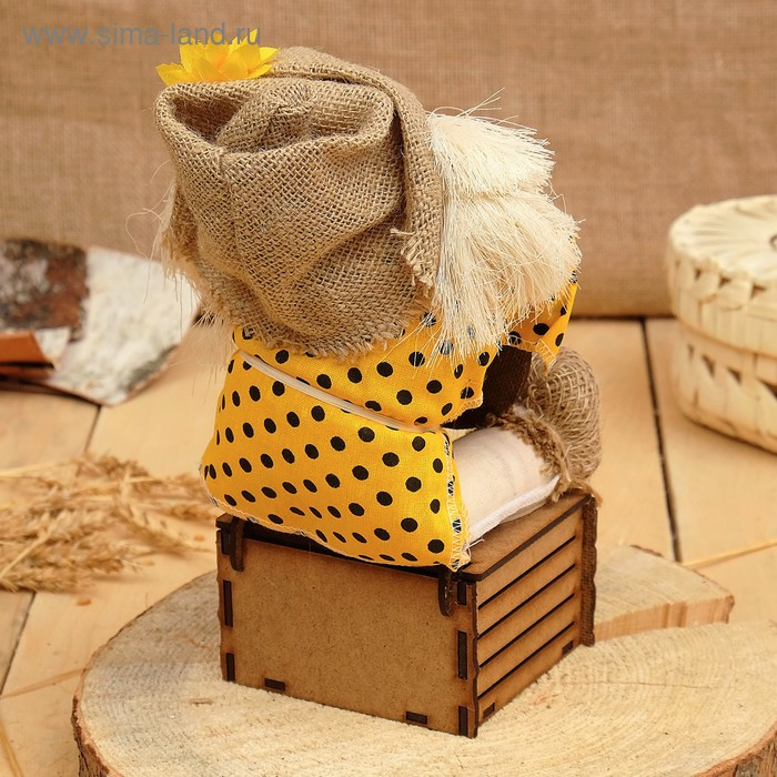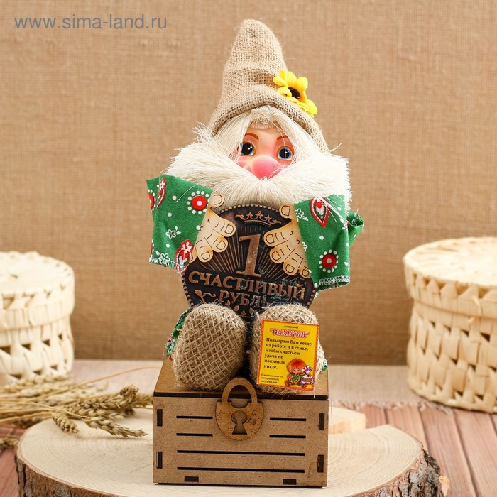 Оберег-домовой "Славуся в льняном колпаке, на сундуке с рублем", 34х23х19 см, микс