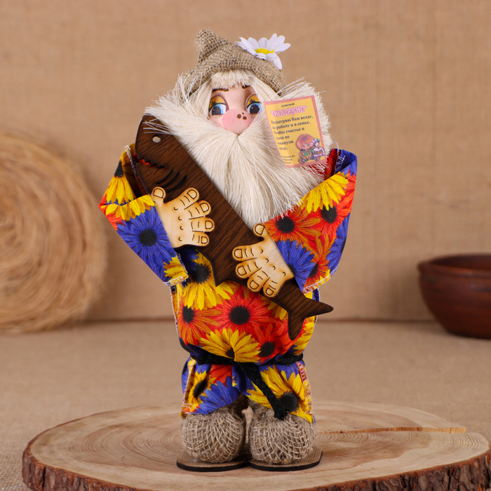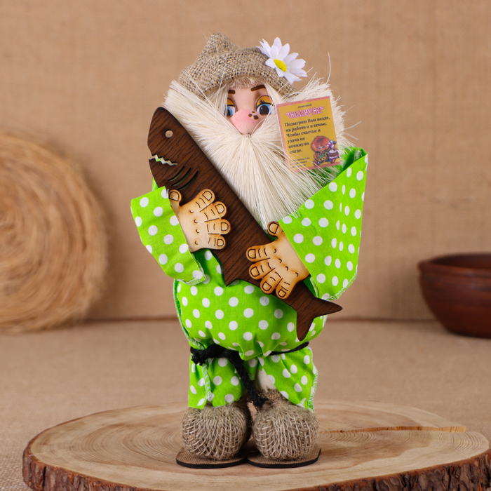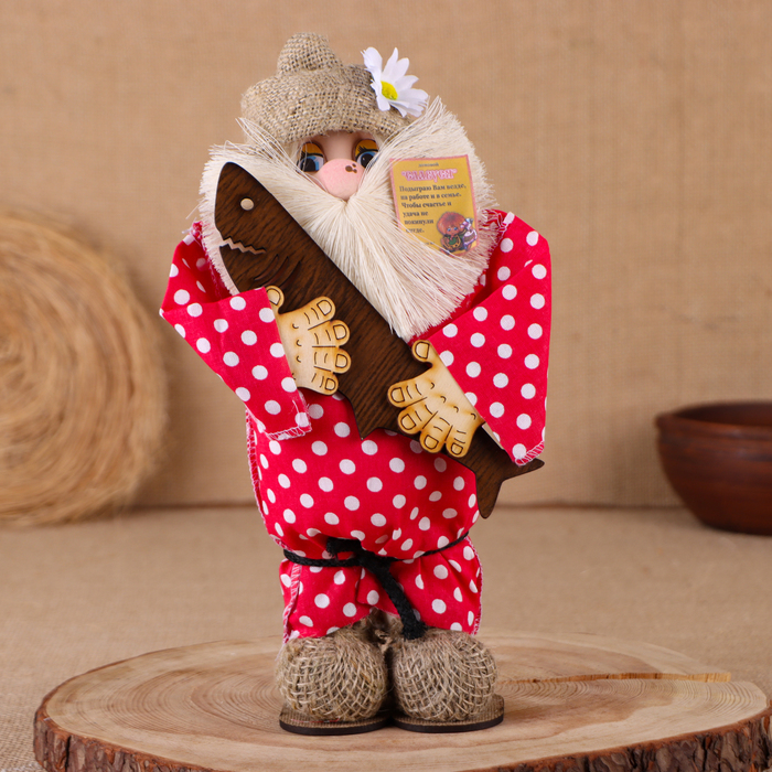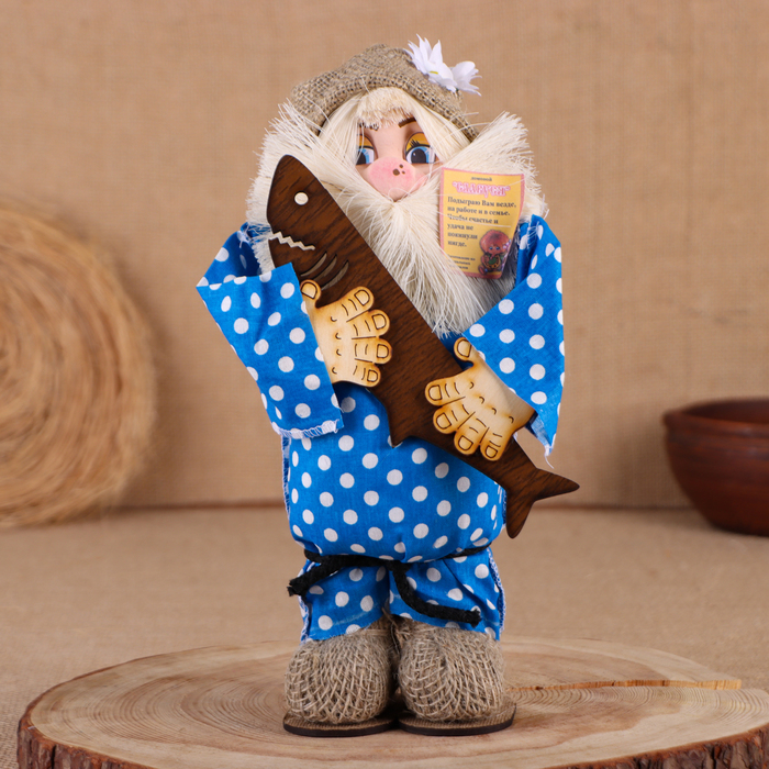 Оберег-домовой "Славуся в льняном колпаке, с рыбой ", 30х22х10 см, микс