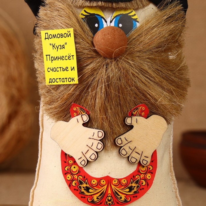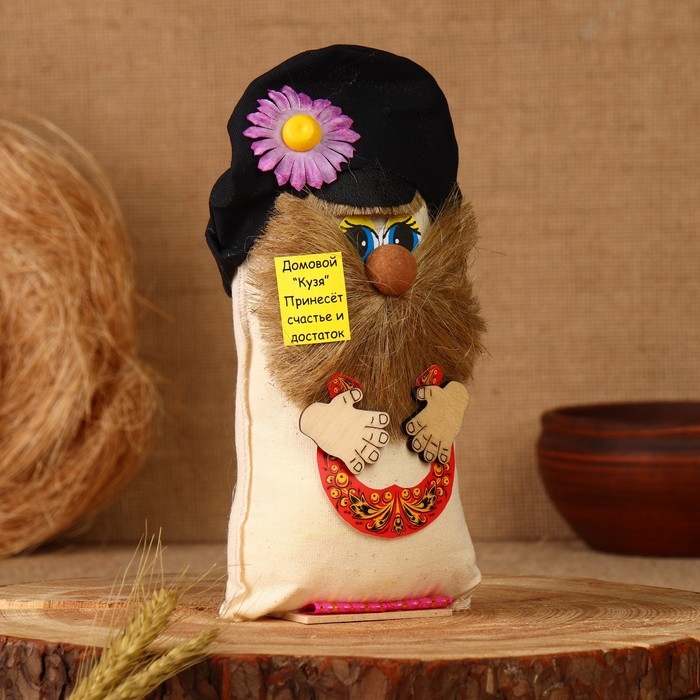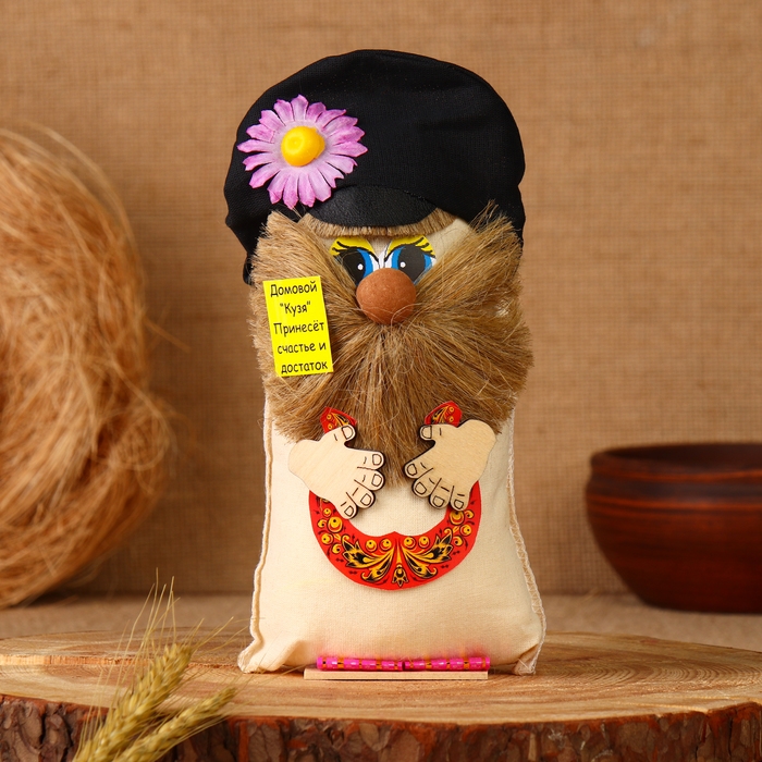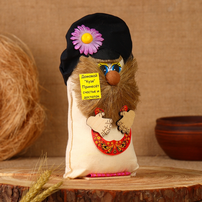 Оберег-домовой "Кузя в кепке, с метлой и подковой", 23х25х13 см МИКС