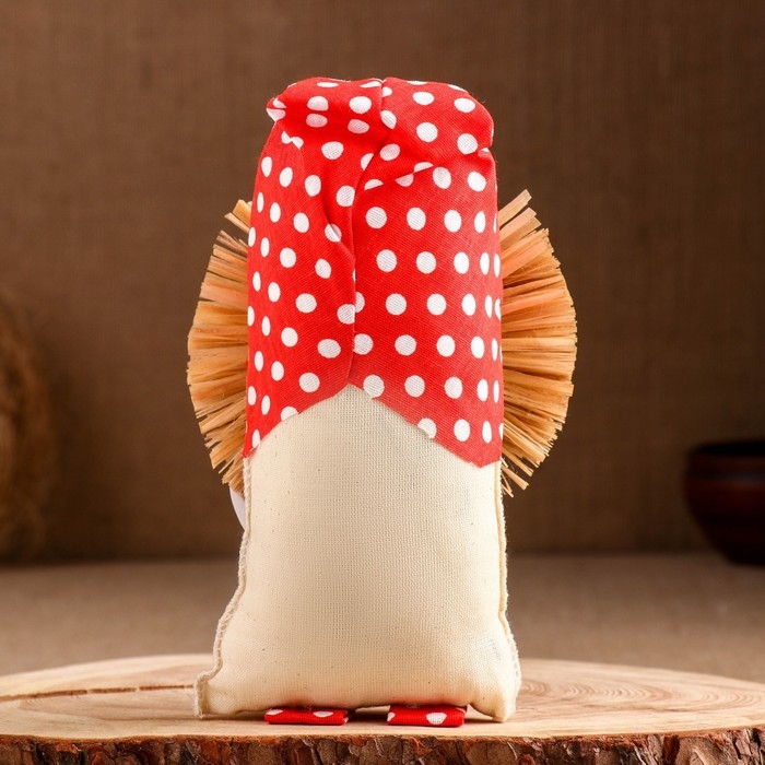 Оберег-домовой "Славуся в льняном колпаке, с ложкой и подковой", микс