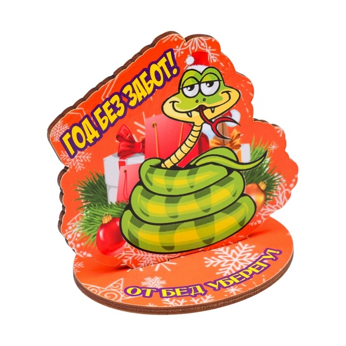 Оберег на подставке "Год без забот!" символ года, змея 8 х 9 см