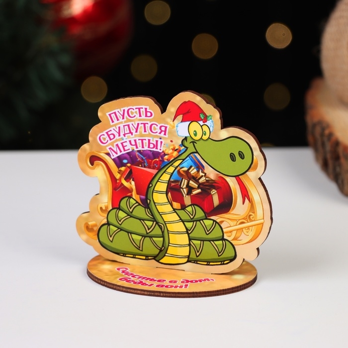 Оберег на подставке "Пусть сбудутся мечты!" символ года, змея 8 х 9 см