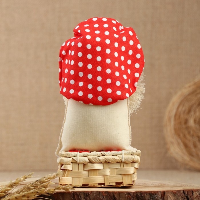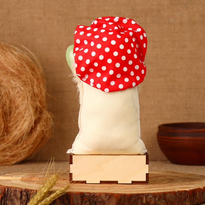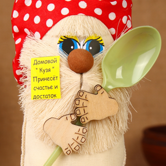 Оберег-домовой "Славуся в льняном колпаке, с ложкой и подковой", микс