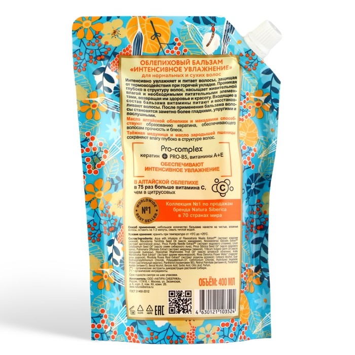 Бальзам для волос Natura Siberica «Облепиховый», максимальный объём, дой-пак, 500 мл