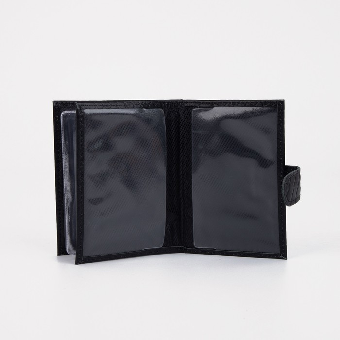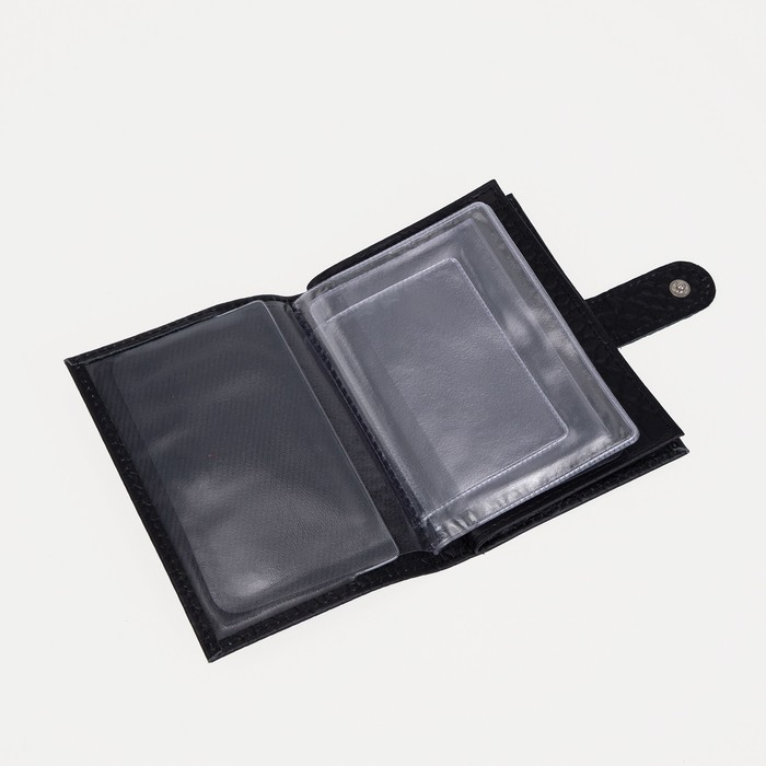 Обложка для автодокументов и паспорта на кнопке, цвет чёрный