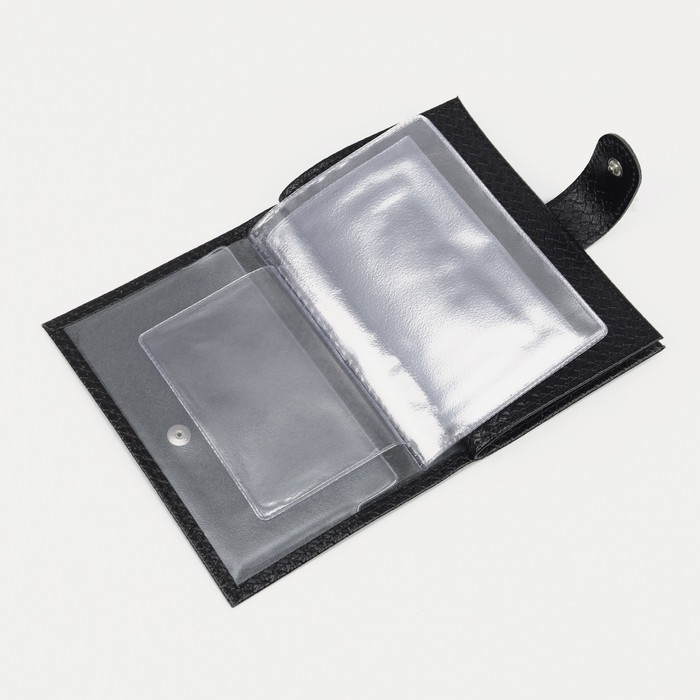 Обложка для автодокументов и паспорта на кнопке, цвет чёрный