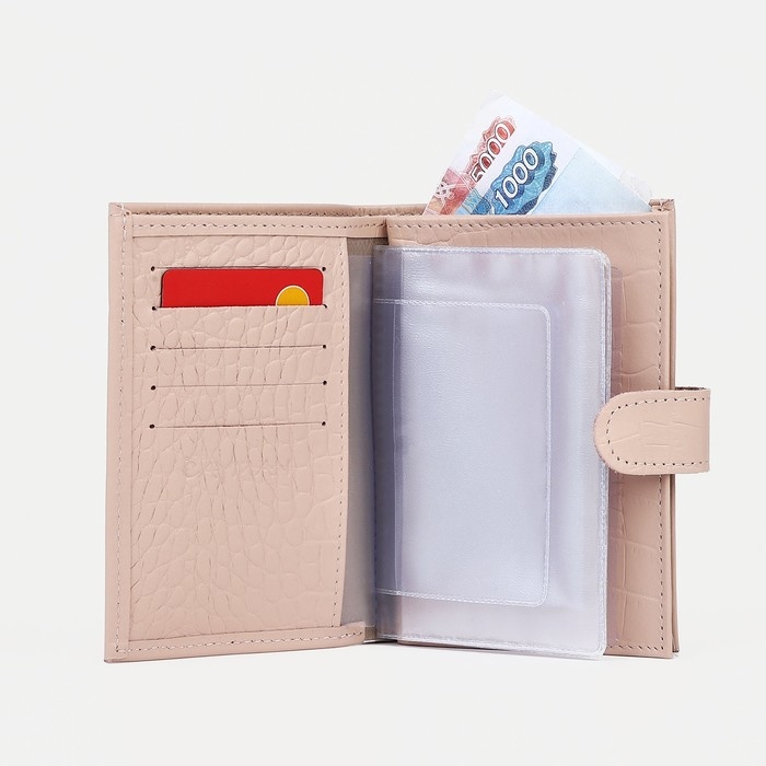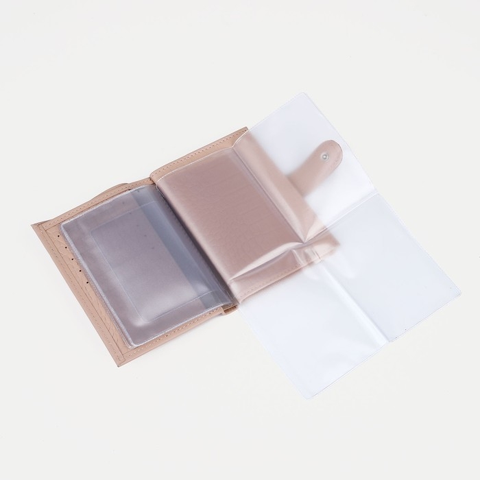 Обложка для автодокументов и паспорта на кнопке, цвет пудра
