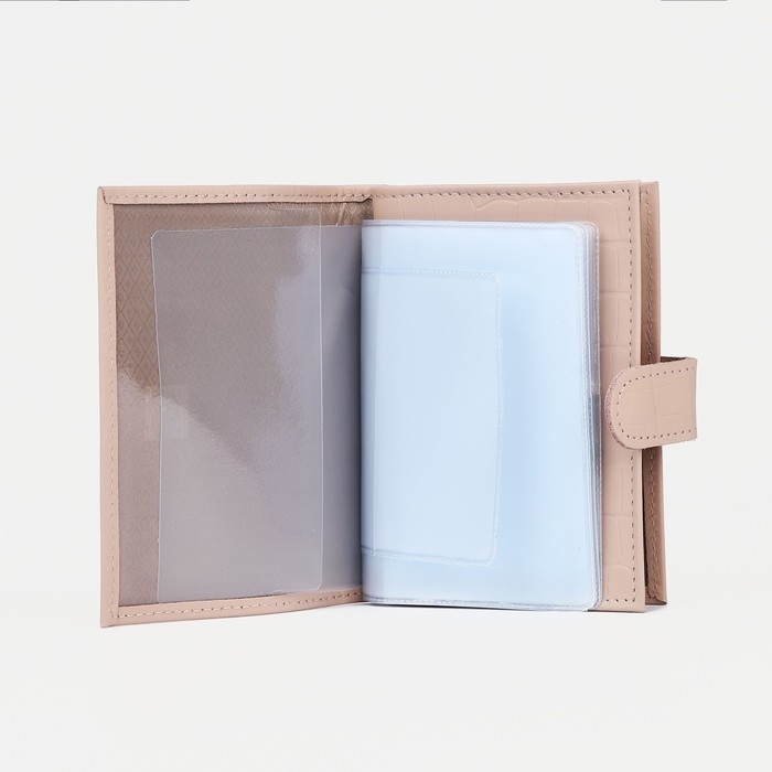 Обложка для автодокументов и паспорта на кнопке, цвет пудра