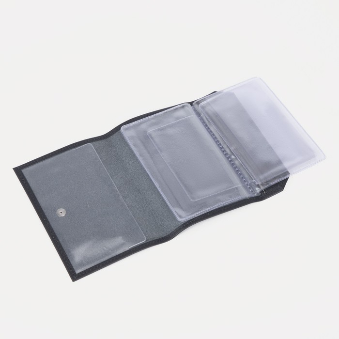 Обложка для автодокументов на кнопке, цвет чёрный