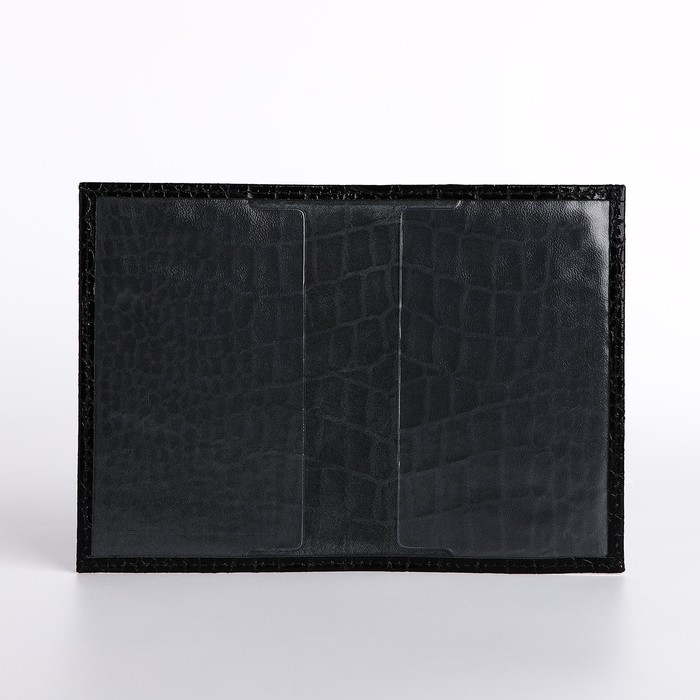 Обложка для паспорта, крокодил, цвет чёрный