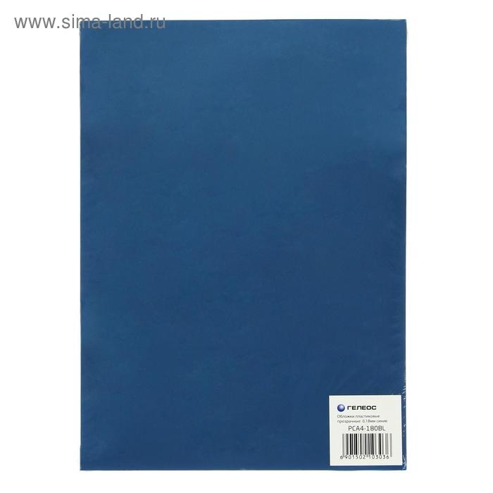 Обложки для переплета A4, 180 мкм, 100 листов, пластиковые, прозрачные синие, Гелеос