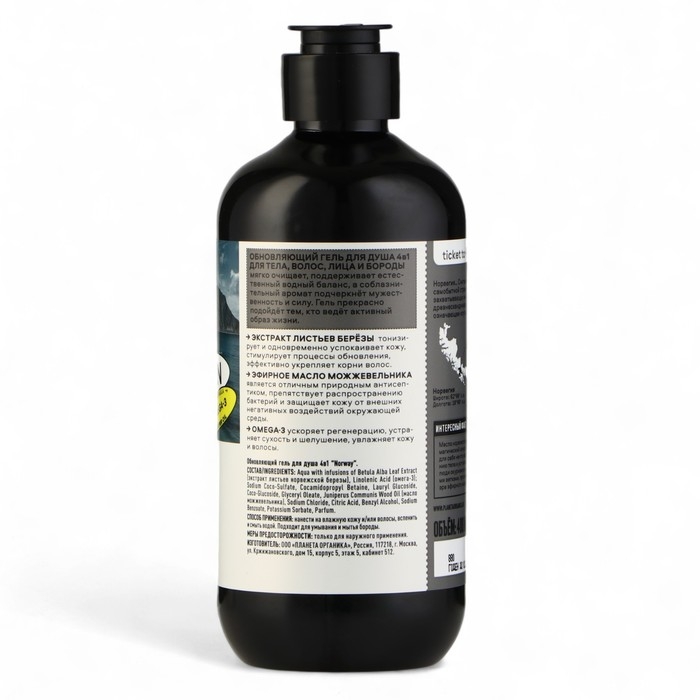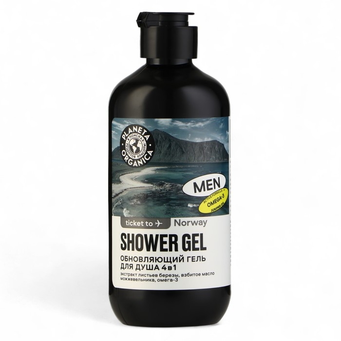 Обновляющий гель Planeta Organica Ticket to Men Norway мужской для душа 4в1, 400 мл