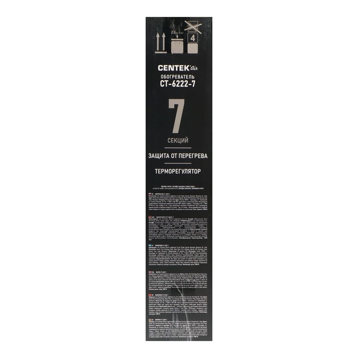 Обогреватель Centek CT-6222-7, масляный, напольный, 1500 Вт, 15 м², 7 секций, бело-чёрный