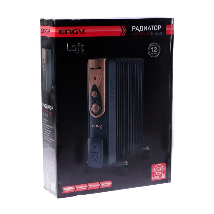 Обогреватель ENGY EN-2409 Loft, масляный, напольный, 2000 Вт, 20 м², черный