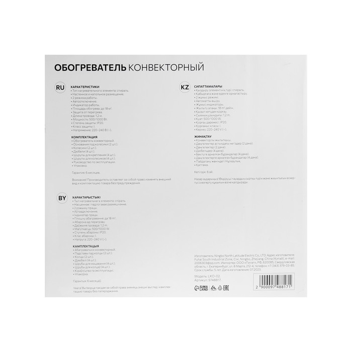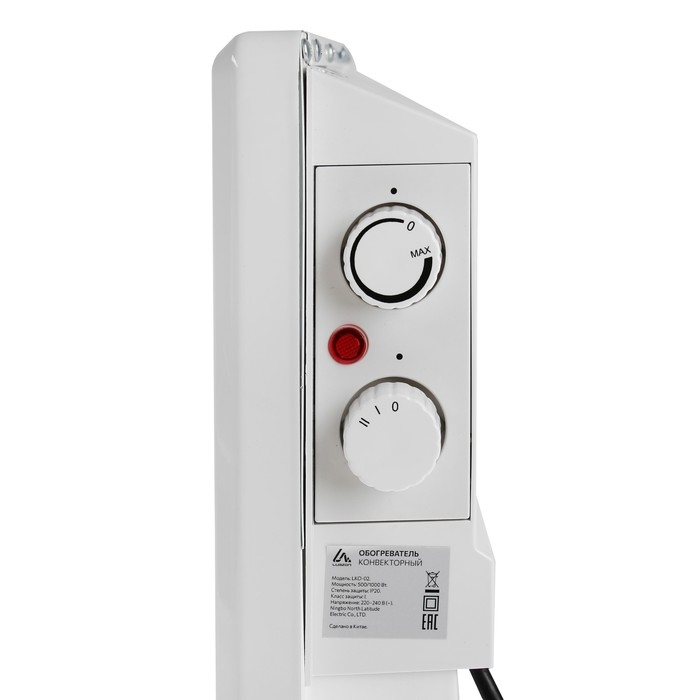 Обогреватель конвекторный Luazon LКO-02, напольный, 1000 Вт, 18 м², 2 режима, белый