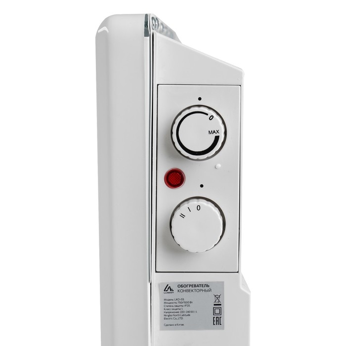Обогреватель конвекторный Luazon LКO-03, напольный, 1500 Вт, 30 м², 2 режима, белый