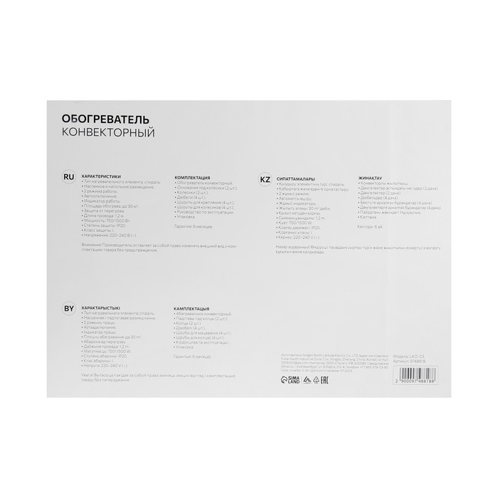 Обогреватель Eurolux ОК-EU-2000C, конвекторный, 2000 Вт, 20 м², белый