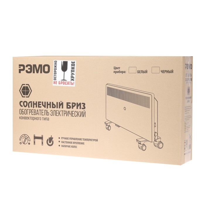 Обогреватель РЭМО СБ-2000.2 B, конвекторный, настенный/напольный, 2000 Вт, 30 м², чёрный