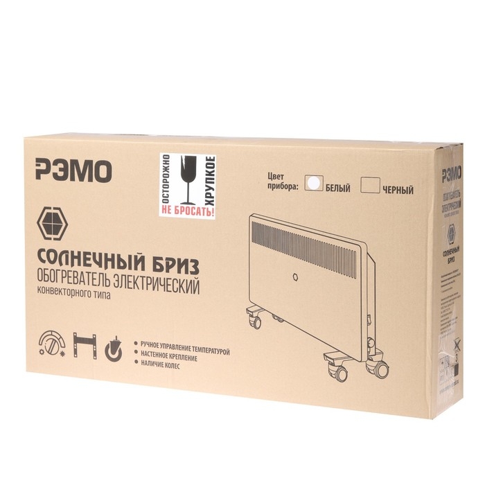 Обогреватель РЭМО СБ-2000.2 W, конвекторный, настенный/напольный, 2000 Вт, 30 м², белый