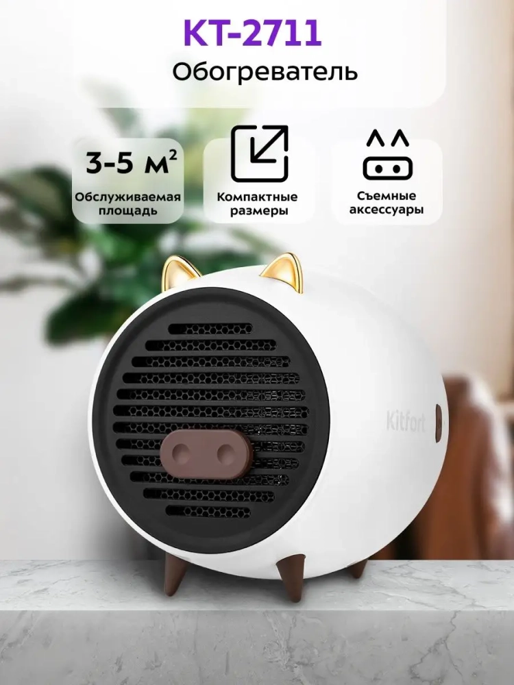 Китфорт КТ-2711 предназначен для обогрева воздуха рядом с вами, он будет нагревать воздух в районе его размещения. Прибор имеет компактные размеры. Обогреватель подойдёт, чтобы согреть руки или установить на стол и направить на себя.