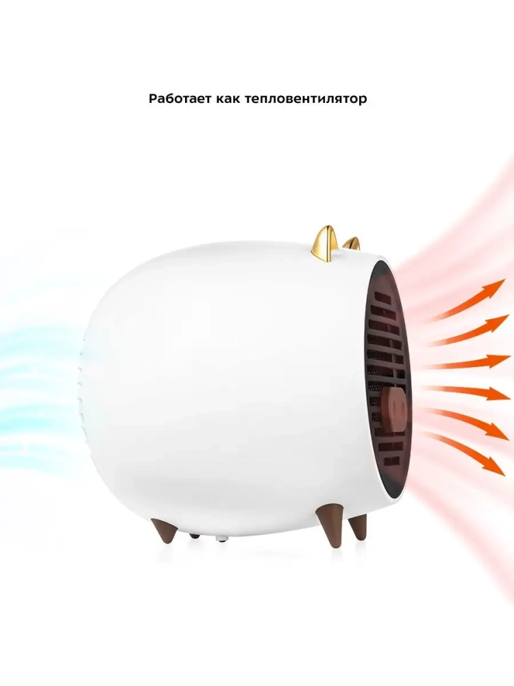 У обогревателя милый дизайн в виде свинки: на верхней части корпуса располагаются ушки, на лицевой стороне есть декоративная вставка в виде пятачка. Установить вставки очень просто: вставьте ушки и пятачок в отверстия на верхней части корпуса и решётке.