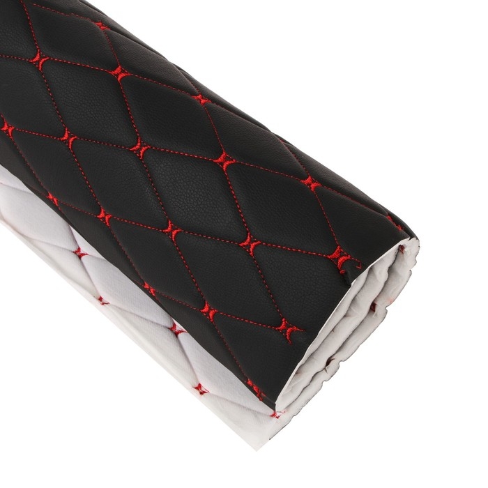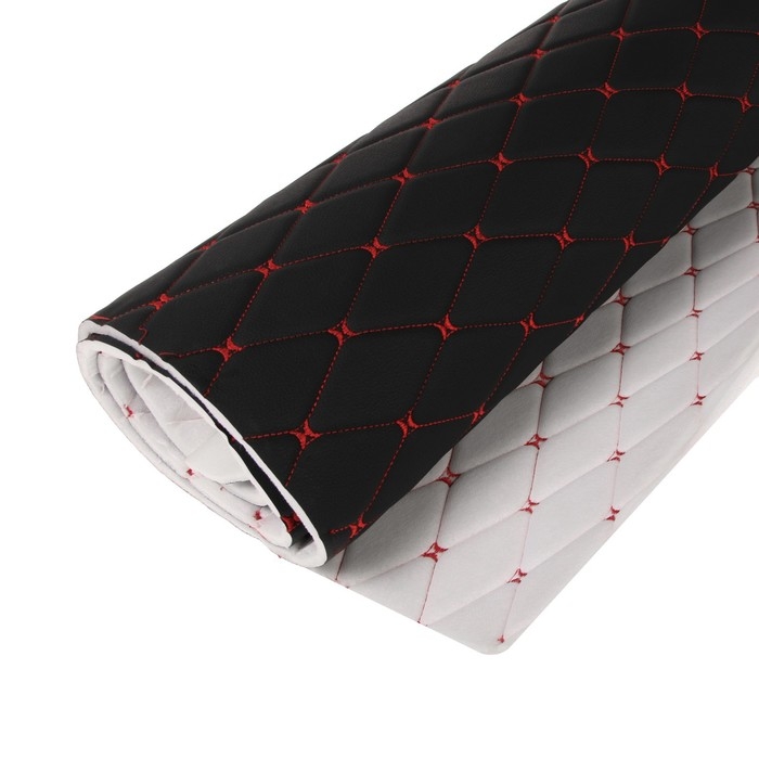 Обшивка салона авто 100×160×0,7 см, кожзам/поролон, ромб, красная строчка
